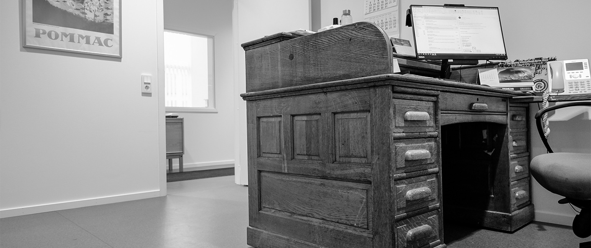 Kanske är det mer ett arbetsbord än ett skrivbord – vi har flera bildbevis som visar att det har placerats många glasbägare på detta skrivbord genom åren. De mest kända så här långt är de som sedemera blev Pommac och Loranga-smakerna.